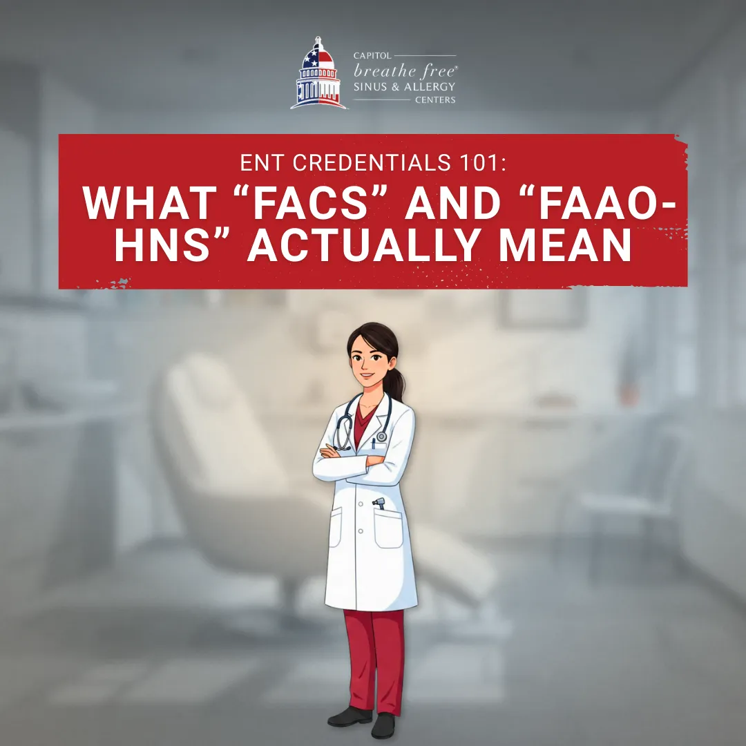 This guide was created by Capitol Breathe Free and reflects general information to help patients in Arlington, Woodbridge, and nearby Northern Virginia communities understand the basics of ENT credentials and help them choose the right provider for their needs. It is not a substitute for medical advice or an endorsement of specific providers.