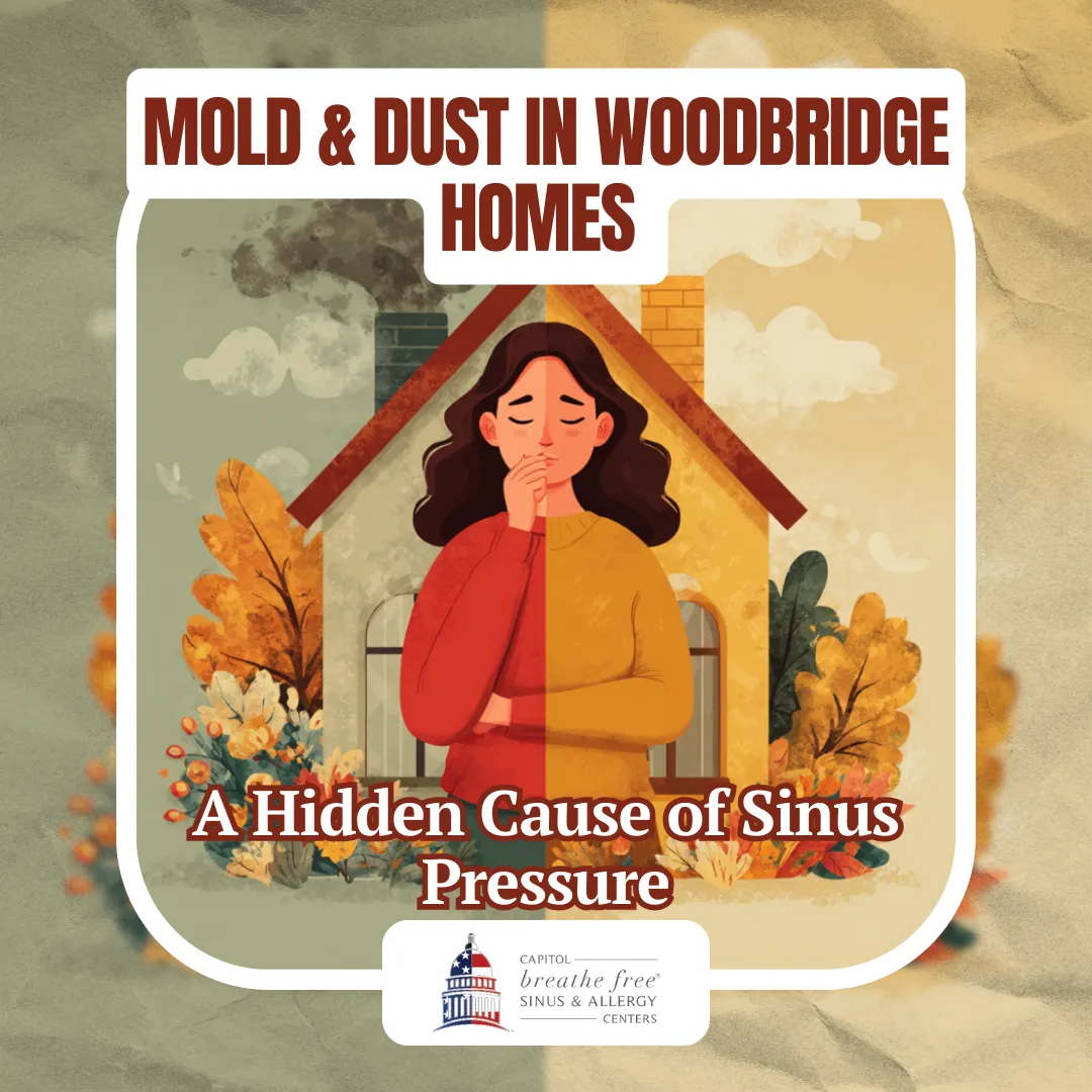 If you live in Woodbridge, Virginia, and struggle with frequent sinus pressure, you’re not alone. While many people assume weather changes or pollen are the culprits, there’s another common — but often overlooked — cause: indoor allergens. At Capitol Breathe Free Sinus & Allergy Centers, we’ve worked with many patients whose sinus issues were linked to mold and dust in the home environment.